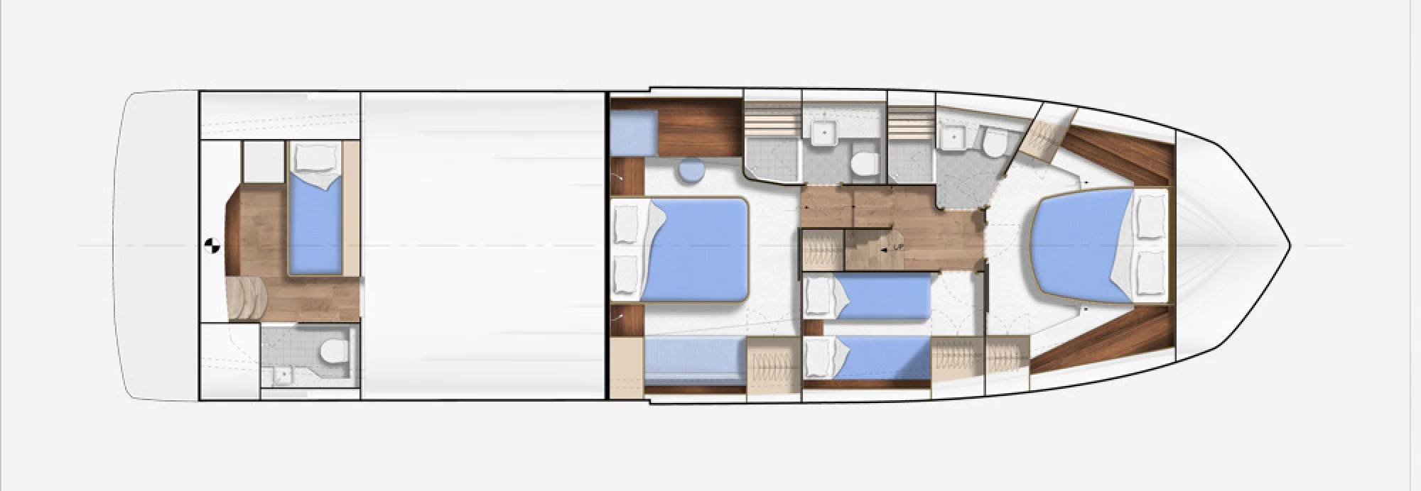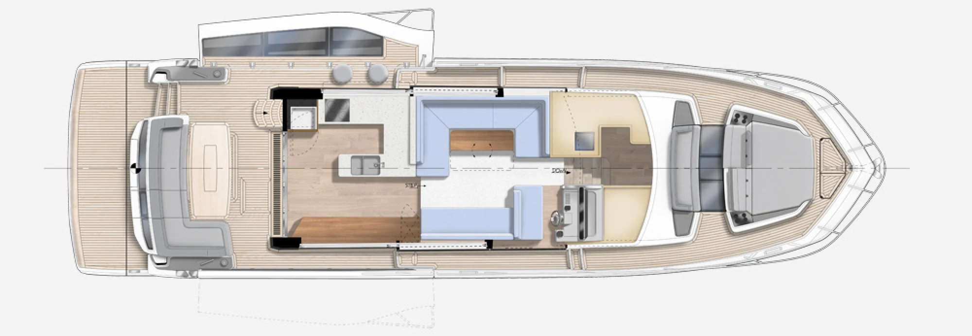 Luxury and space come together in this unique model from Galeon. Enjoy an abundance of space on both decks and a plethora of windows that ensure a well-lit interior. On the top deck guests are two U-shaped, opposite facing rest and dining areas, with a seating area up front and an upper helm station with wet bar and grill. The large overhang area comes with uninterrupted space for leisure and activities and can be occupied by two free-standing sun loungers. This flexible approach to space distribution allows for respite during the day and entertaining guests in the evening. Argo Assured 5 Year Warranty – T’s & C’s Apply |