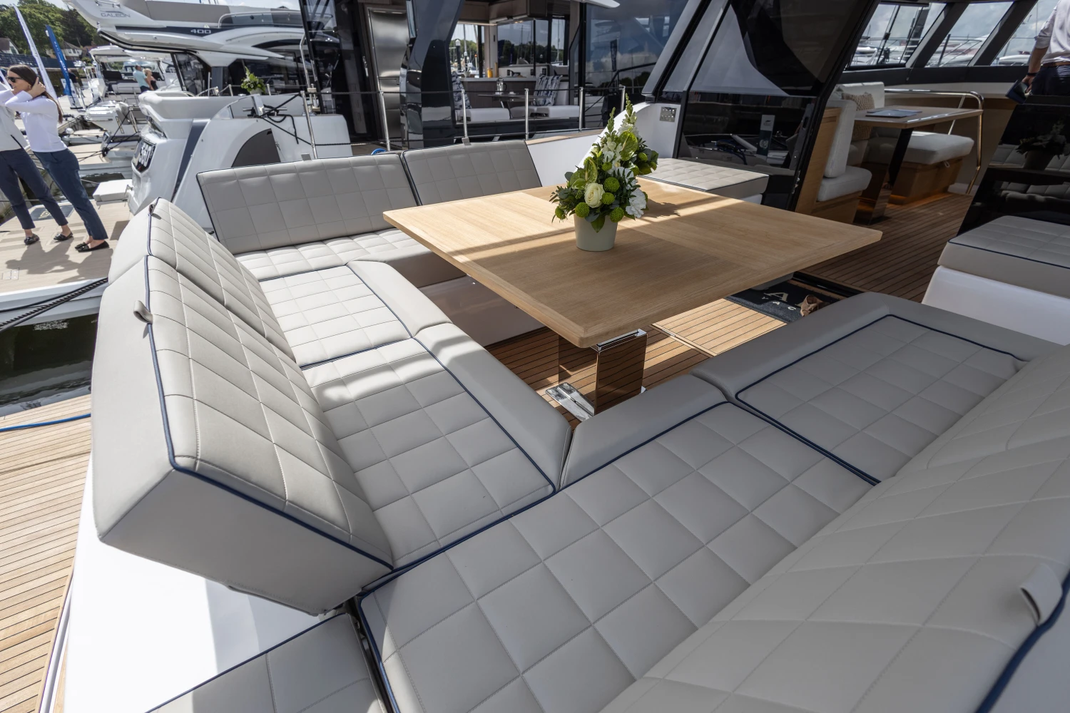 Outstanding features include; Stern doors can be opened completely (similar to the Endurance 60); the swim platform is larger, for housing a tender or personal watercraft; and the roof on the GT52 has a semi-open mode. The cockpit dining and sunbathing spaces are extremely spacious, and the below decks space is more flexible.
