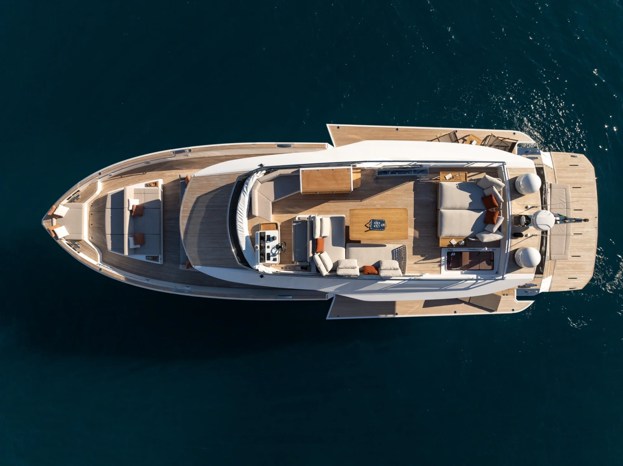 With more space, volume and comfort, the new Pardo E72 promises an elevated socialising space for family and friends. Her fold-down side terraces and the aft platform provides up to 40 square meters of onboard space to relax and enjoy magical adventures with loved ones.