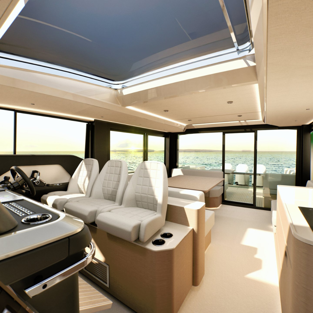Saxdor has enhanced the 460's onboard experience, creating more comfort on board, generous living areas and an enclosed all season wheelhouse that connects seamlessly with the exterior decks.