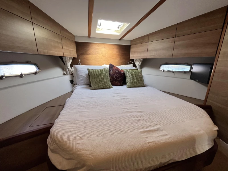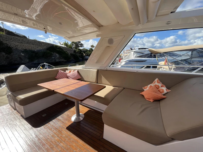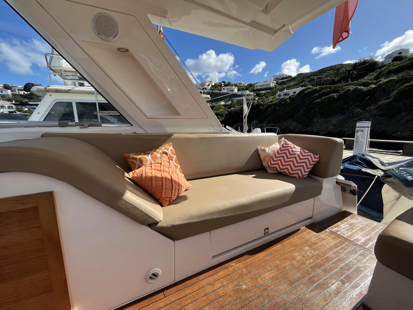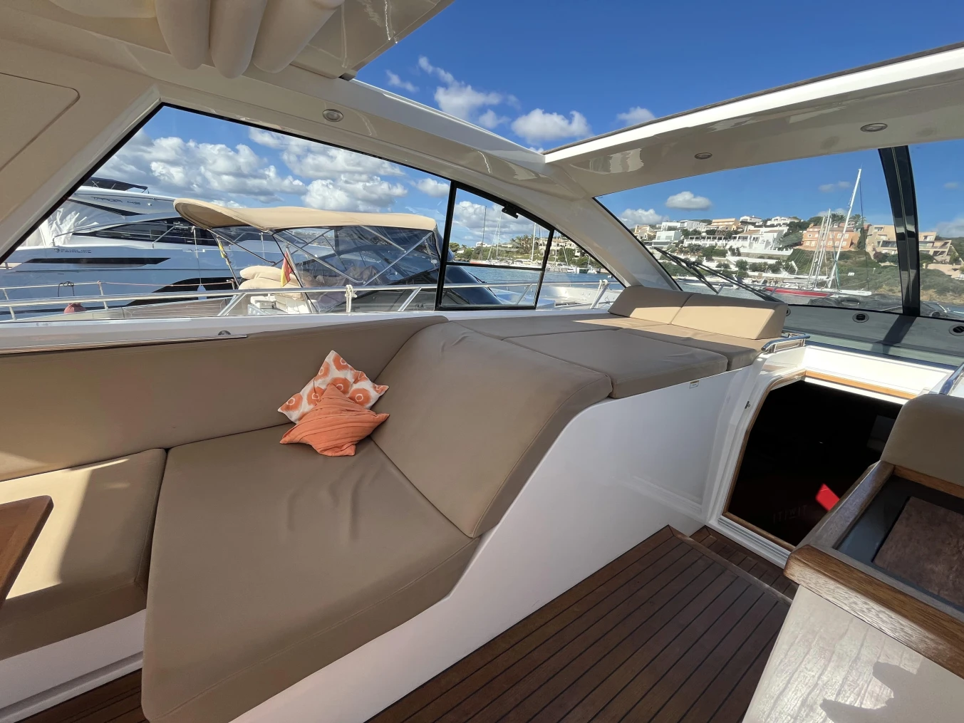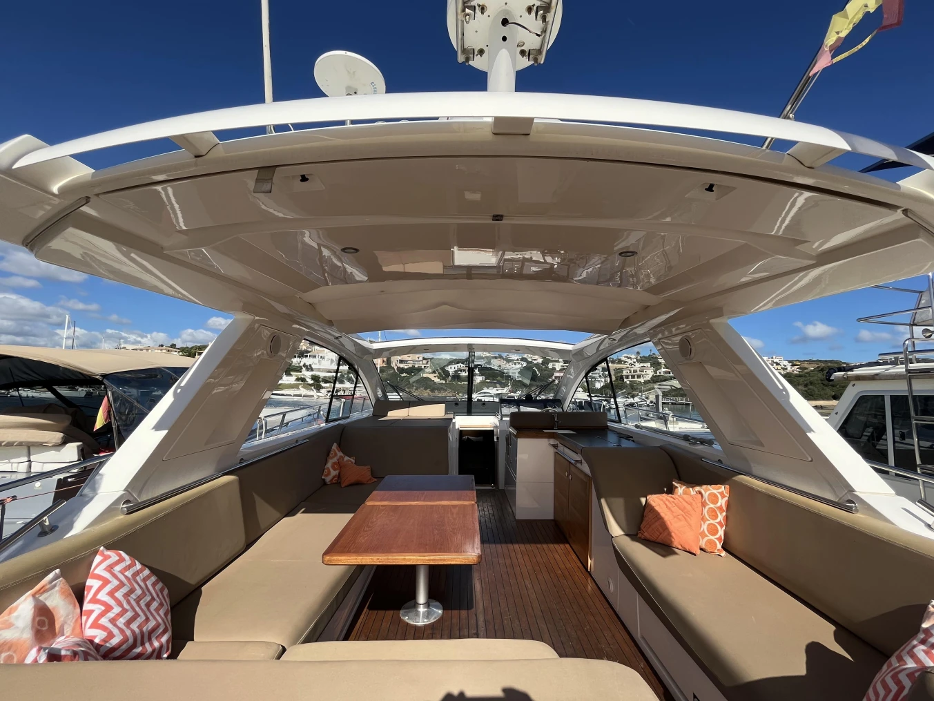 Eu tax paid • Twin Cummins QSB 5.9 Diesel engines • 2 Cabins accommodating 4 guests • White hull • Teak laid cockpit • Teak laid hi/lo bathing platform • Electric operated roof • Bimini • Joystick control • Trim tabs • Bow thruster • Kohler generator • Reverse cycle air-conditioning • Hot and cold water system • Hot and cold transom shower • Opacmare hydraulic passarelle • Bimini • Full set of cockpit covers, helm cover, cockpit table cover • Wetbar with BBQ, fridge and icemaker • Flatscreen TV to saloon and cabins • CD and DVD player