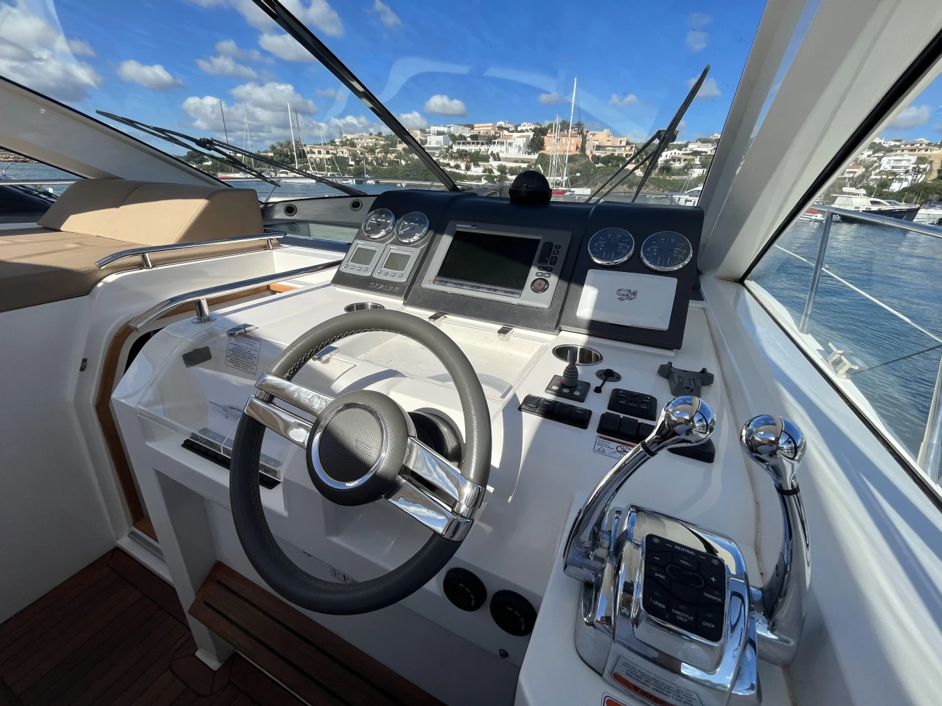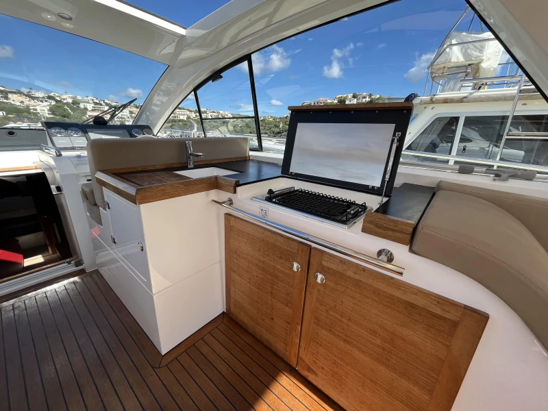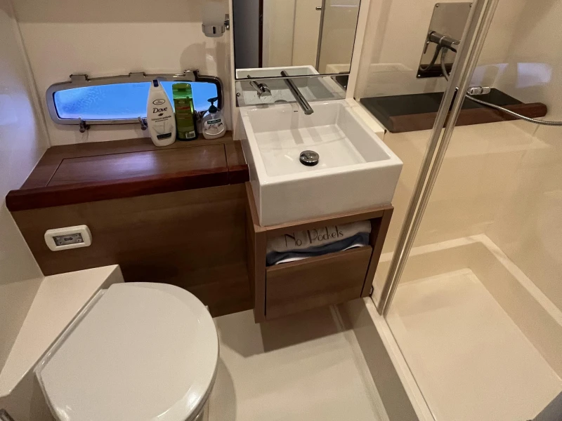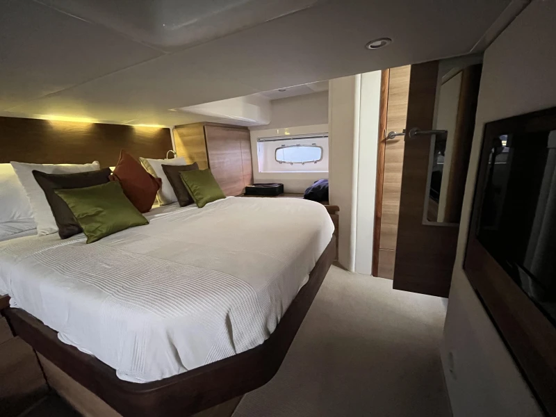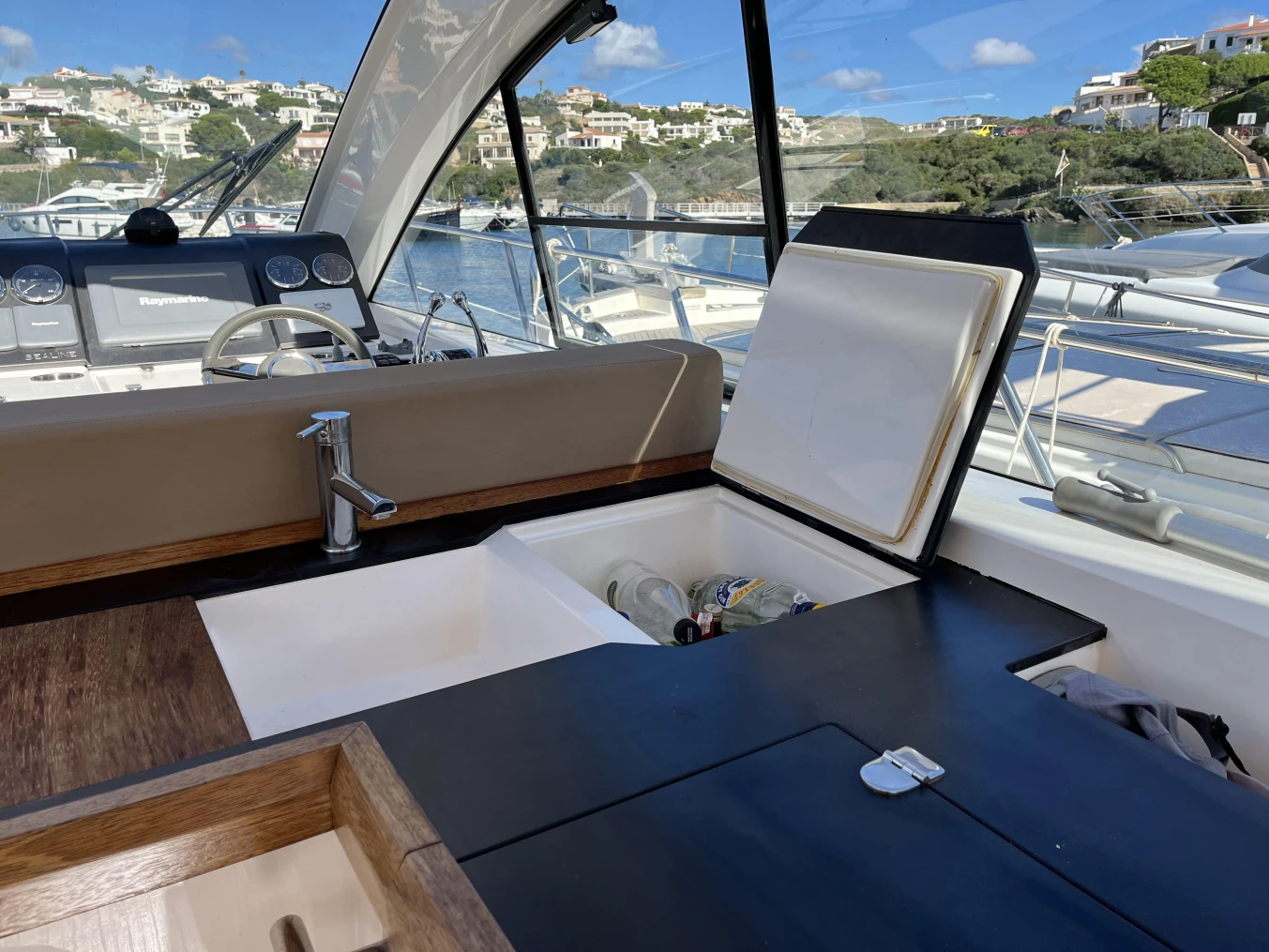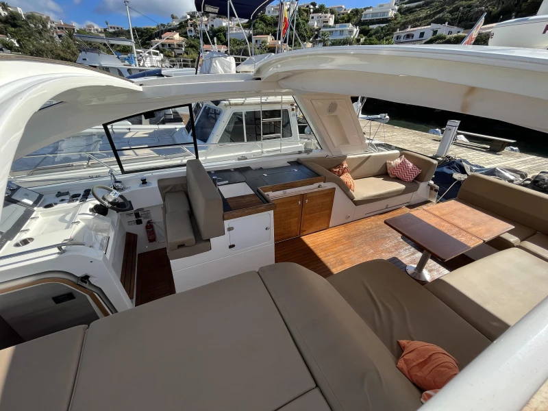 Eu tax paid • Twin Cummins QSB 5.9 Diesel engines • 2 Cabins accommodating 4 guests • White hull • Teak laid cockpit • Teak laid hi/lo bathing platform • Electric operated roof • Bimini • Joystick control • Trim tabs • Bow thruster • Kohler generator • Reverse cycle air-conditioning • Hot and cold water system • Hot and cold transom shower • Opacmare hydraulic passarelle • Bimini • Full set of cockpit covers, helm cover, cockpit table cover • Wetbar with BBQ, fridge and icemaker • Flatscreen TV to saloon and cabins • CD and DVD player