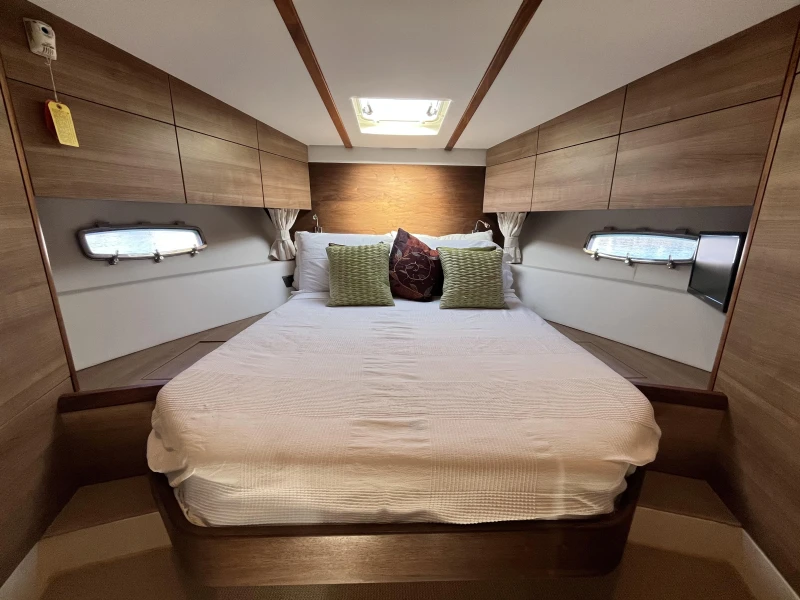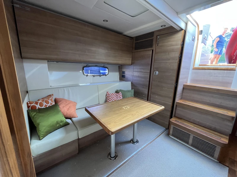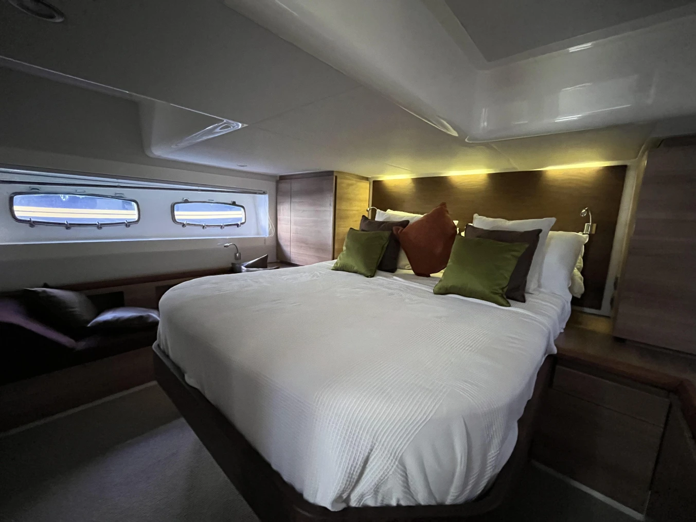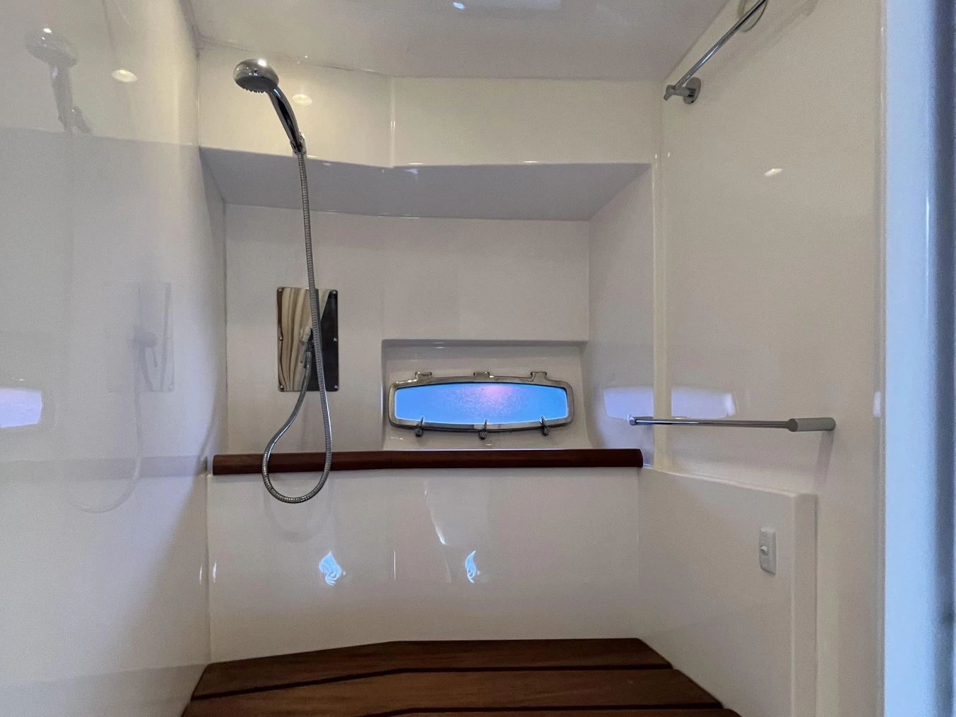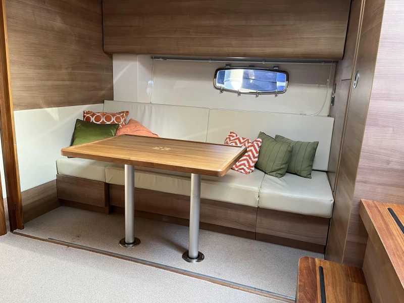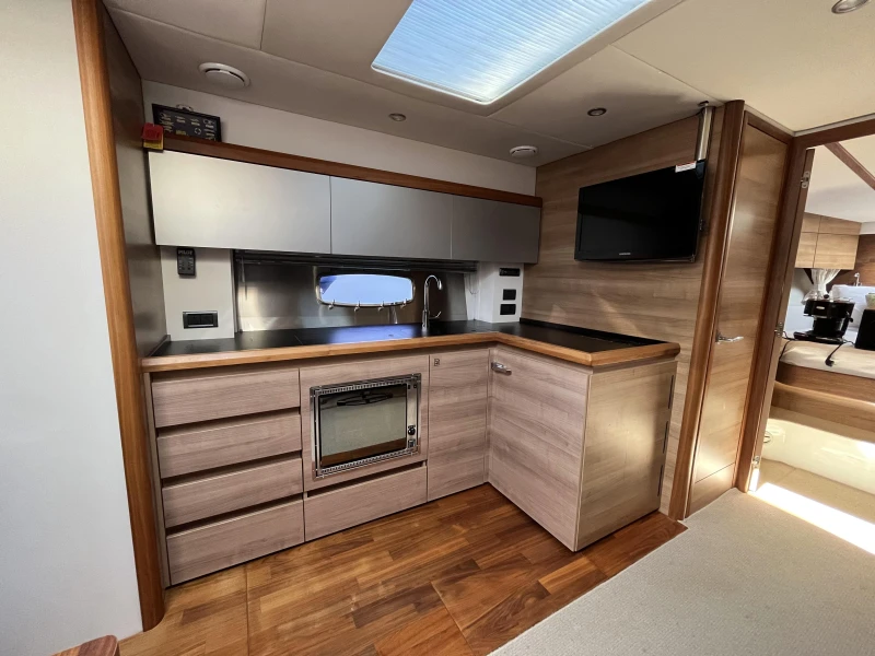 Eu tax paid • Twin Cummins QSB 5.9 Diesel engines • 2 Cabins accommodating 4 guests • White hull • Teak laid cockpit • Teak laid hi/lo bathing platform • Electric operated roof • Bimini • Joystick control • Trim tabs • Bow thruster • Kohler generator • Reverse cycle air-conditioning • Hot and cold water system • Hot and cold transom shower • Opacmare hydraulic passarelle • Bimini • Full set of cockpit covers, helm cover, cockpit table cover • Wetbar with BBQ, fridge and icemaker • Flatscreen TV to saloon and cabins • CD and DVD player